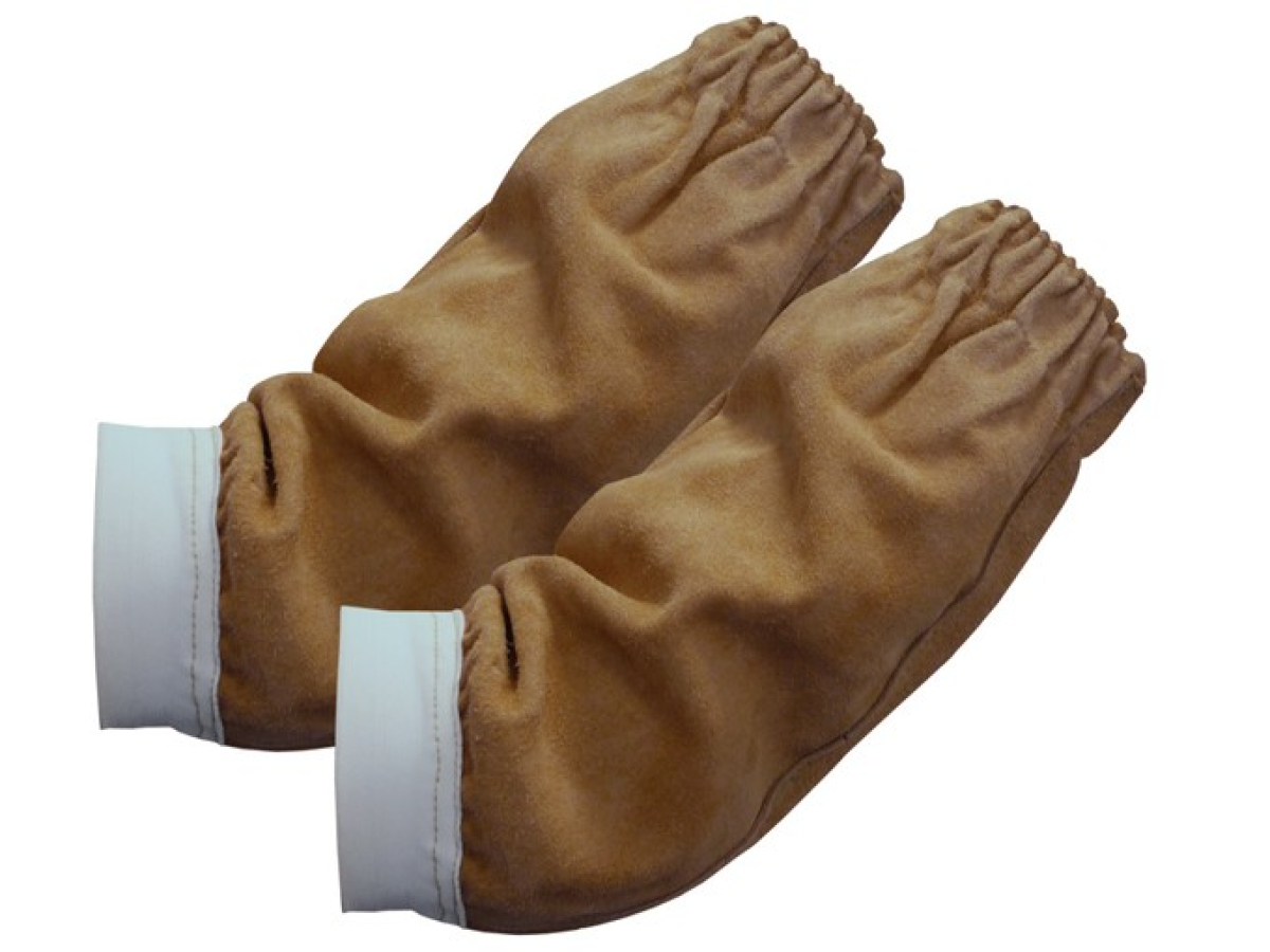 Chaqueta para soldador con manga larga color marrón destinada a la protección del usuario en trabajos expuestos al calor y al fuego, trabajos de soldeo.