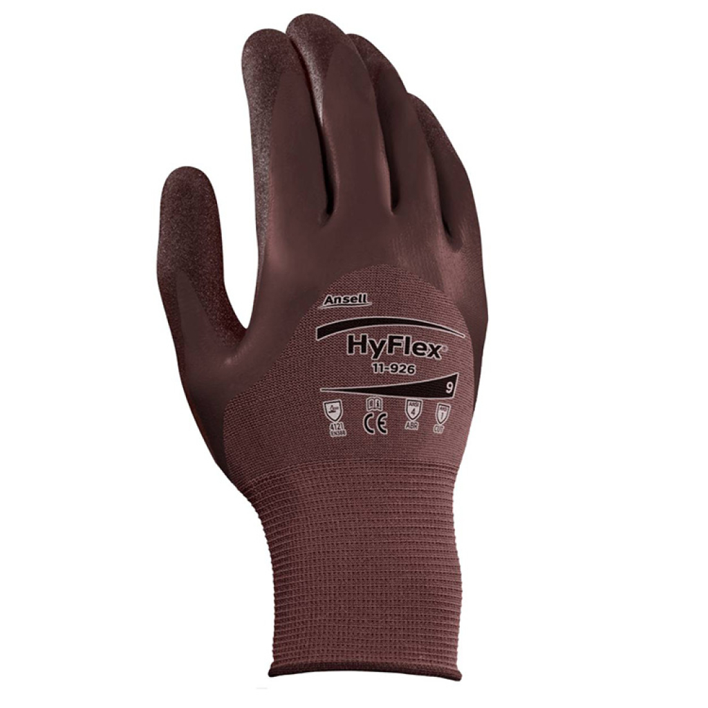 HyFlex® 11-926 es el primer guante ligero HyFlex® que combina un diseño parcialmente recubierto, repelencia al aceite y agarre en seco en un mismo guante flexible.