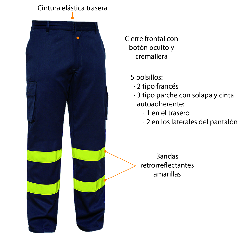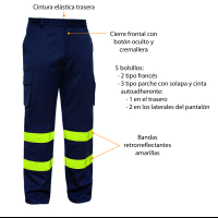 • Dos bandas alta visibilidad amarillas termo soldadas en perneras.
