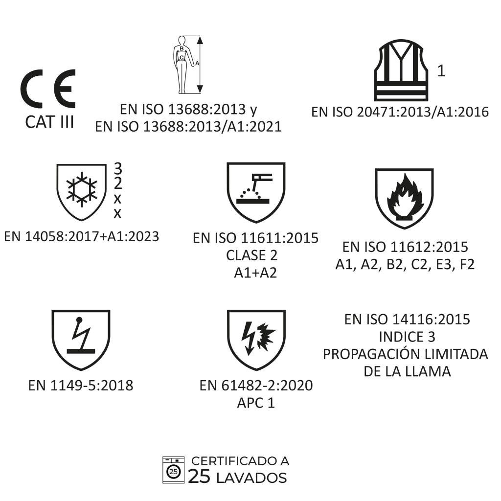 • EN ISO 13688:2013 y EN ISO 13688:2013/A1:2021