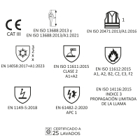 • EN ISO 11611:2015 Clase 2 A1+A2