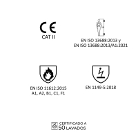 EPI destinado a la protección del torso y extremidades superiores del usuario, con excepción de cabeza, brazos y manos, contra riesgos térmicos de inflamabilidad, calor convectivo, calor radiante, calor por contacto, contra riesgo de acumulación de cargas electrostáticas.