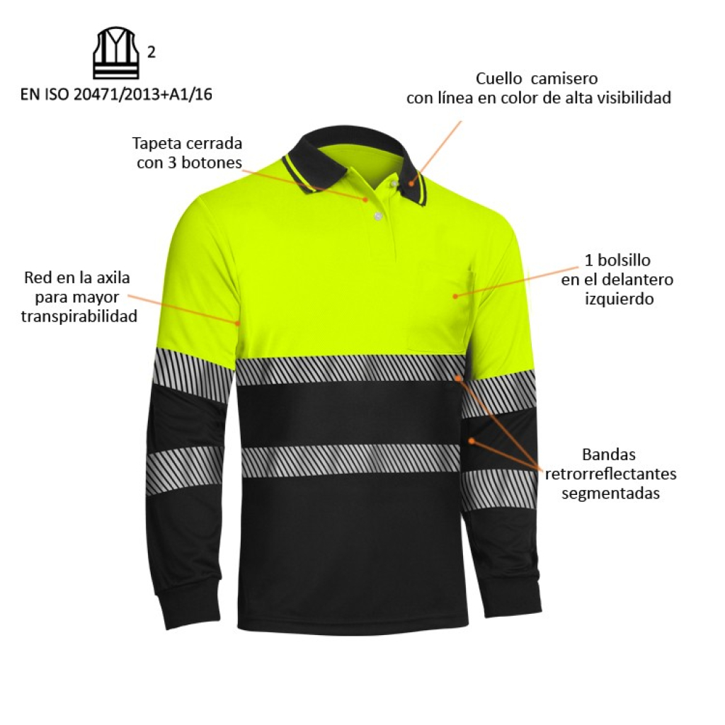 POLO MANGA LARGA ALTA VISIBILIDAD BANDAS SEGMENTADAS COMBINADO ADEEPI - CLASE 2