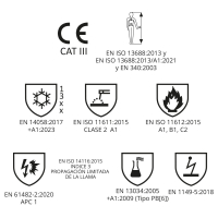 • EN ISO 13688:2013+A1:2021 y EN ISO 13688:2013/A1:2021 y EN 340:2003