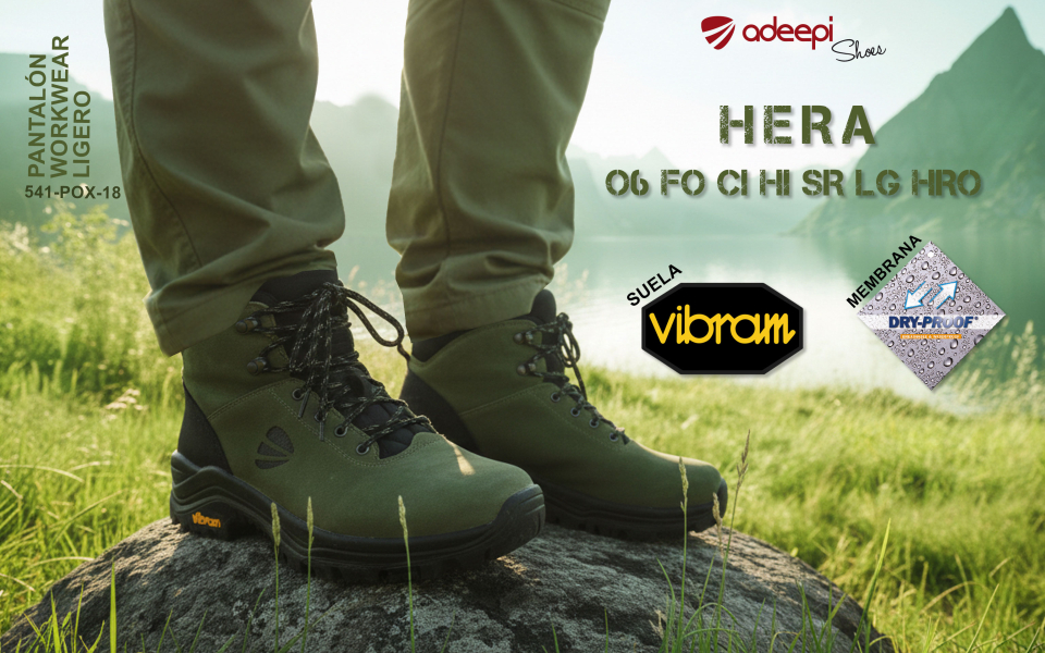 Suela VIBRAM de gran agarre y comodidad, y piel flor natural hidrofugada con membrana DRY-PROOF.