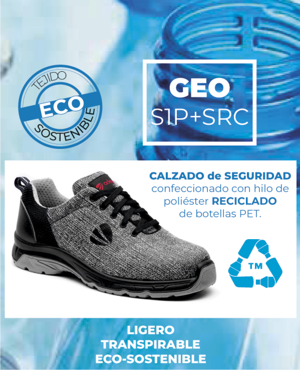 Adeepi lanza el nuevo modelo GEO S1P SRC, un calzado de Seguridad confeccionado con hilo de poliéster RECICLADO de botellas PET.
