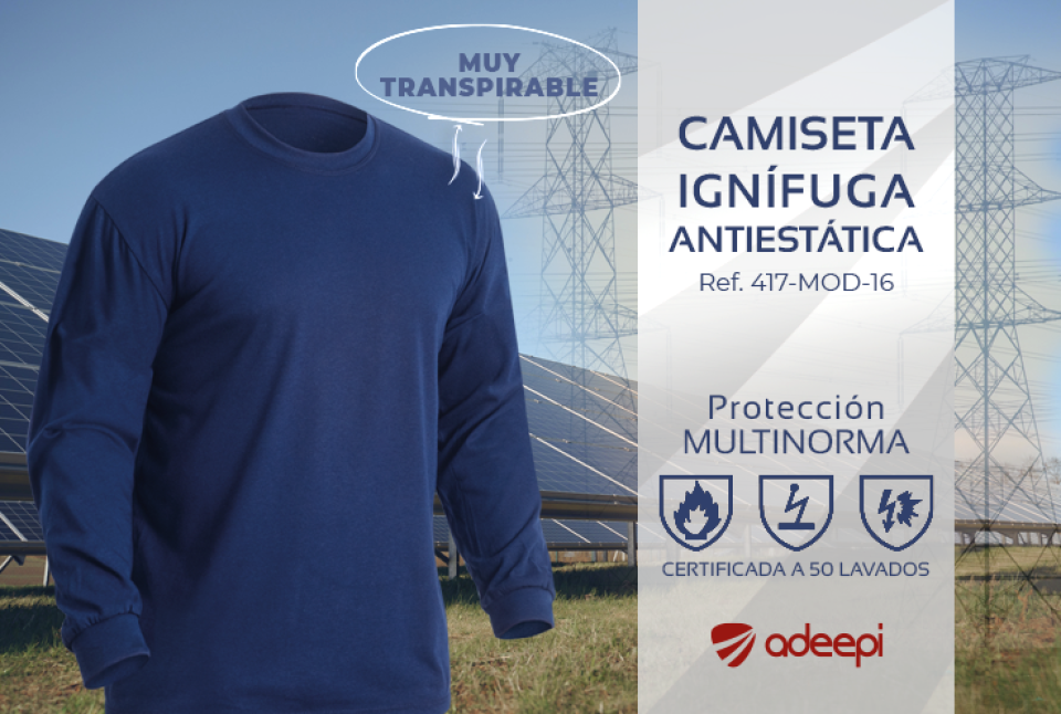 La camiseta ignífuga y antiestática de ADEEPI, es una prenda de protección altamente confiable y segura. Su tejido agradable al tacto y altamente transpirable proporciona comodidad al usuario, mientras que sus certificaciones garantizan su resistencia al fuego, protección electrostática y resistencia a los riesgos térmicos de un arco eléctrico. Esta camiseta es una elección adecuada para aquellos que trabajan en entornos de alta peligrosidad donde se requiere una protección integral.
