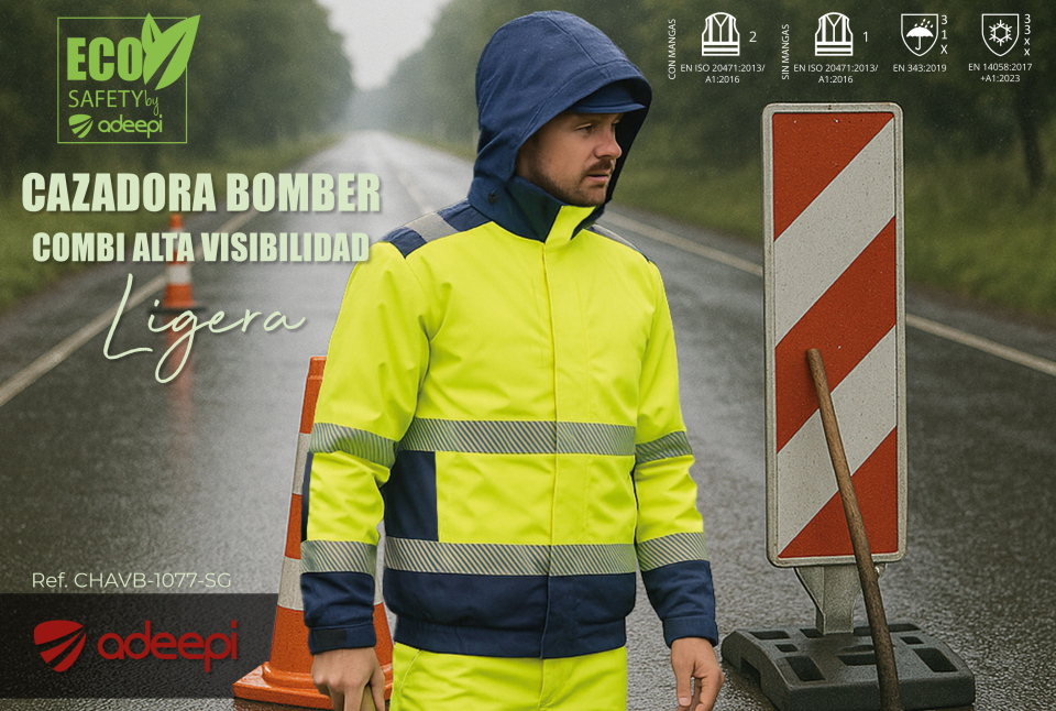 Adeepi presenta una alternativa a las tradicionales cazadoras bomber de alta visibilidad, incorporando mejoras pensadas tanto para el usuario como para el medio ambiente: