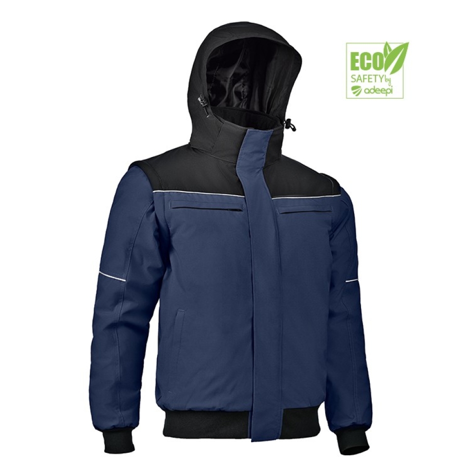 Disponible en marino/negro y gris/negro, es una prenda moderna, fiable y pensada para usuarios exigentes.
