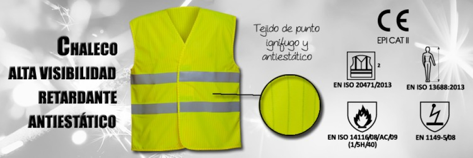 En este caso se ha ideado un chaleco de Alta Visibilidad clase 2 de tejido de punto ignífugo y antiestático, para disipar las cargas electrostáticas que los usuarios pudiesen tener, y también con un tratamiento retardante para posibles exposiciones al calor por contacto.