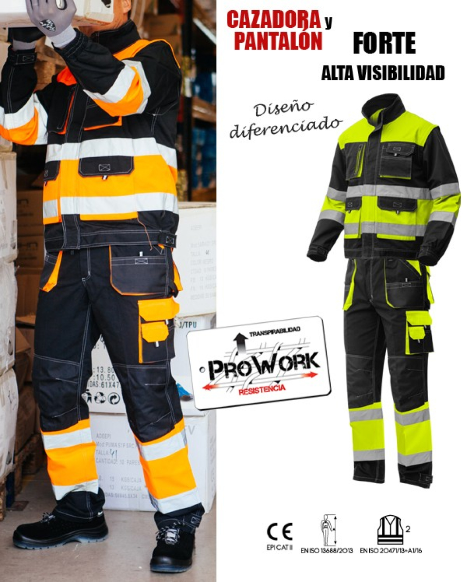 Tras comprobar la gran respuesta que el tejido PROWORK está obteniendo, ADEEPI presenta un pantalón y cazadora con tejido negro PROWORK y contraste AV en amarillo o naranja. Prendas multibolsillos diseñadas para una mayor protección del usuario gracias a la mayor resistencia del tejido tanto a la abrasión como al desgarro, pero sin renunciar a la transpirabilidad y el confort.