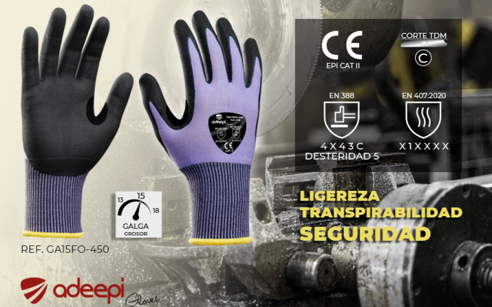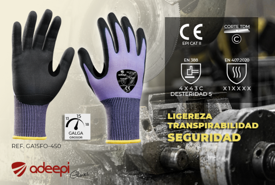 Pocos guantes en el mercado pueden ofrecer los niveles de resistencia de este guante (4X43C) y al mismo tiempo estar confeccionado con GALGA 15, lo que le confiere una máxima ligereza, transpirabilidad y flexibilidad en su rango.