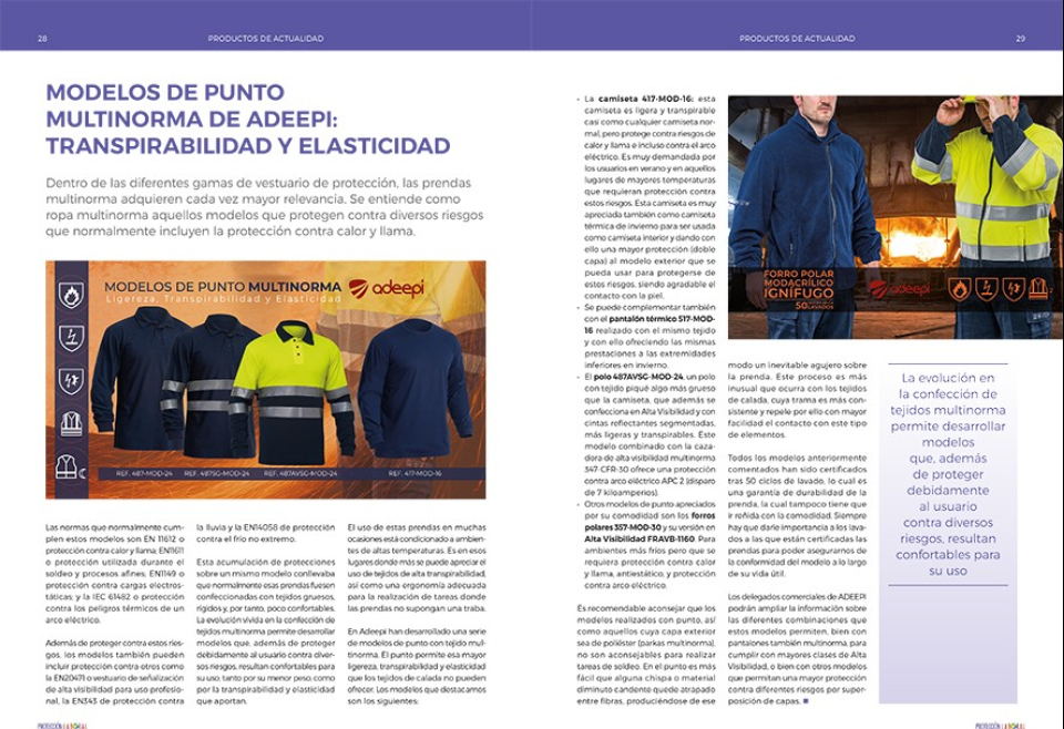 Esta acumulación de protecciones sobre un mismo modelo conllevaba que normalmente esas prendas fuesen confeccionadas con tejidos gruesos, rígidos y por tanto poco confortables. La evolución vivida en la confección de tejidos multinorma nos permite desarrollar modelos que, además de proteger debidamente al usuario contra diversos riesgos, resultan confortables para su uso. Tanto por su menor peso, como por la transpirabilidad y elasticidad que aportan.