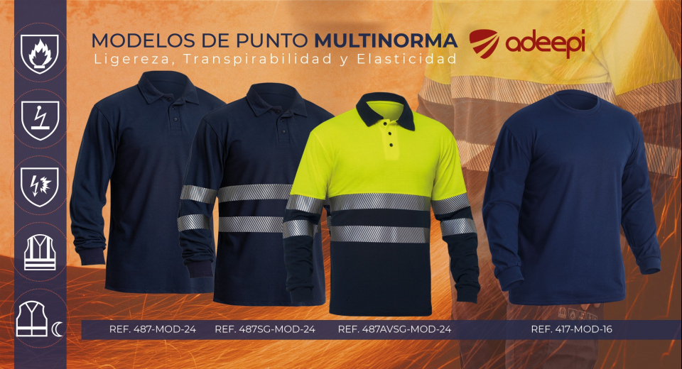 En ADEEPI han desarrollado una serie de modelos de punto con tejido multinorma. El punto permite esa mayor ligereza, transpirabilidad y elasticidad que los tejidos de calada no pueden ofrecer. Los modelos que destacamos son los siguientes: