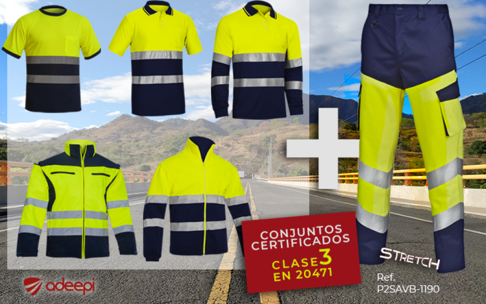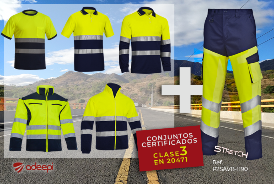 - Combinando el pantalón AV clase 2 de ADEEPI con los modelos indicados, se obtiene CLASE 3. No sería necesario usar prendas todo amarillo y permite proteger zonas de mayor roce o suciedad, preservando con ello las prendas durante más tiempo.