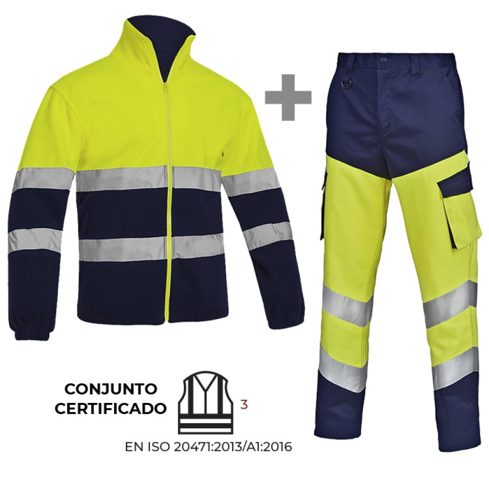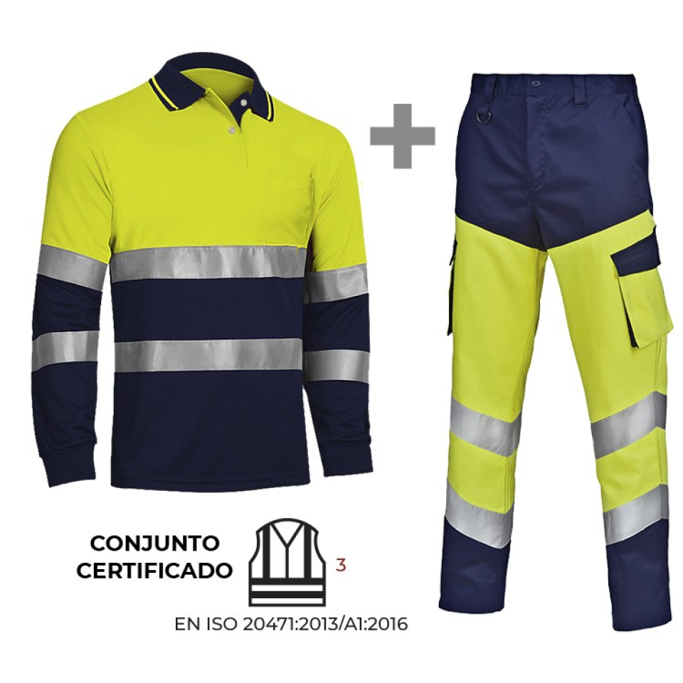 - Usando únicamente el pantalón, ya se obtiene la CLASE 2, suficiente para la mayoría de los puestos que requieren ALTA VISIBILIDAD. Ello permitiría en verano usar una camiseta 100% algodón en la parte superior para aquellos usuarios que quieran evitar el poliéster en torso o parte superior del cuerpo.