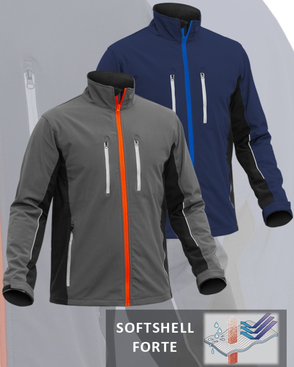Cazadora, polar, jersey.... qué tal un softshell?? ADEEPI amplía su línea de modelos FORTE con esta cazadora softshell. Colores para combinar con las prendas FORTE (versión gris/negro/naranja y marino/negro/azulina).