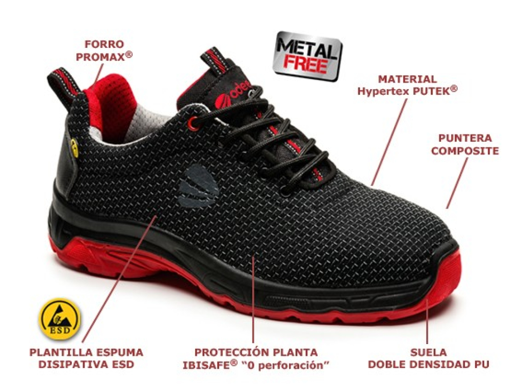 • Sola: sola de PU de dupla densidade injectada ao corte. Resistente a óleo, ESD e antiderrapante (SRC).