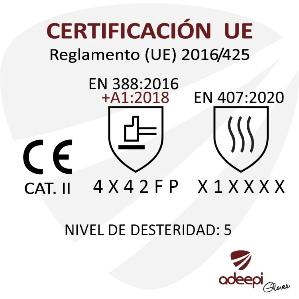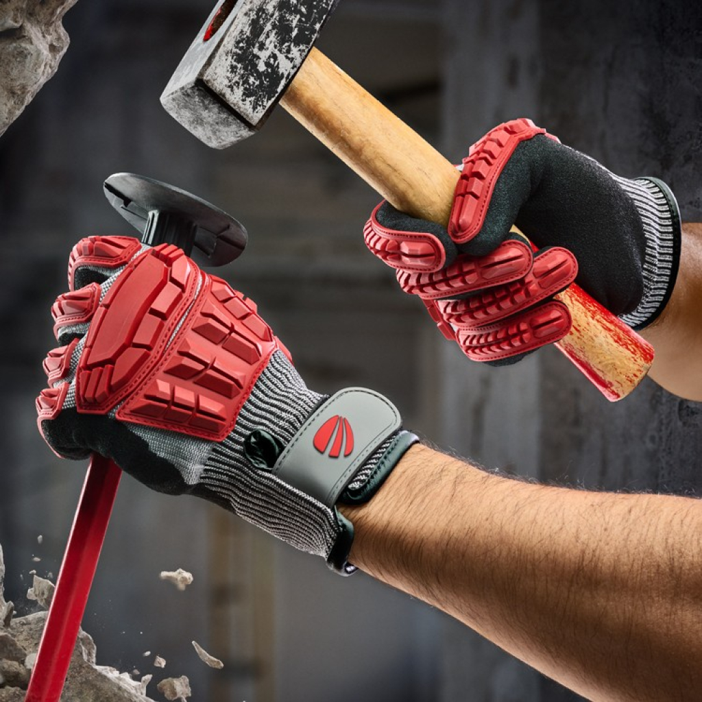 Revestimento protetor na palma, dedos e pontas dos dedos.
